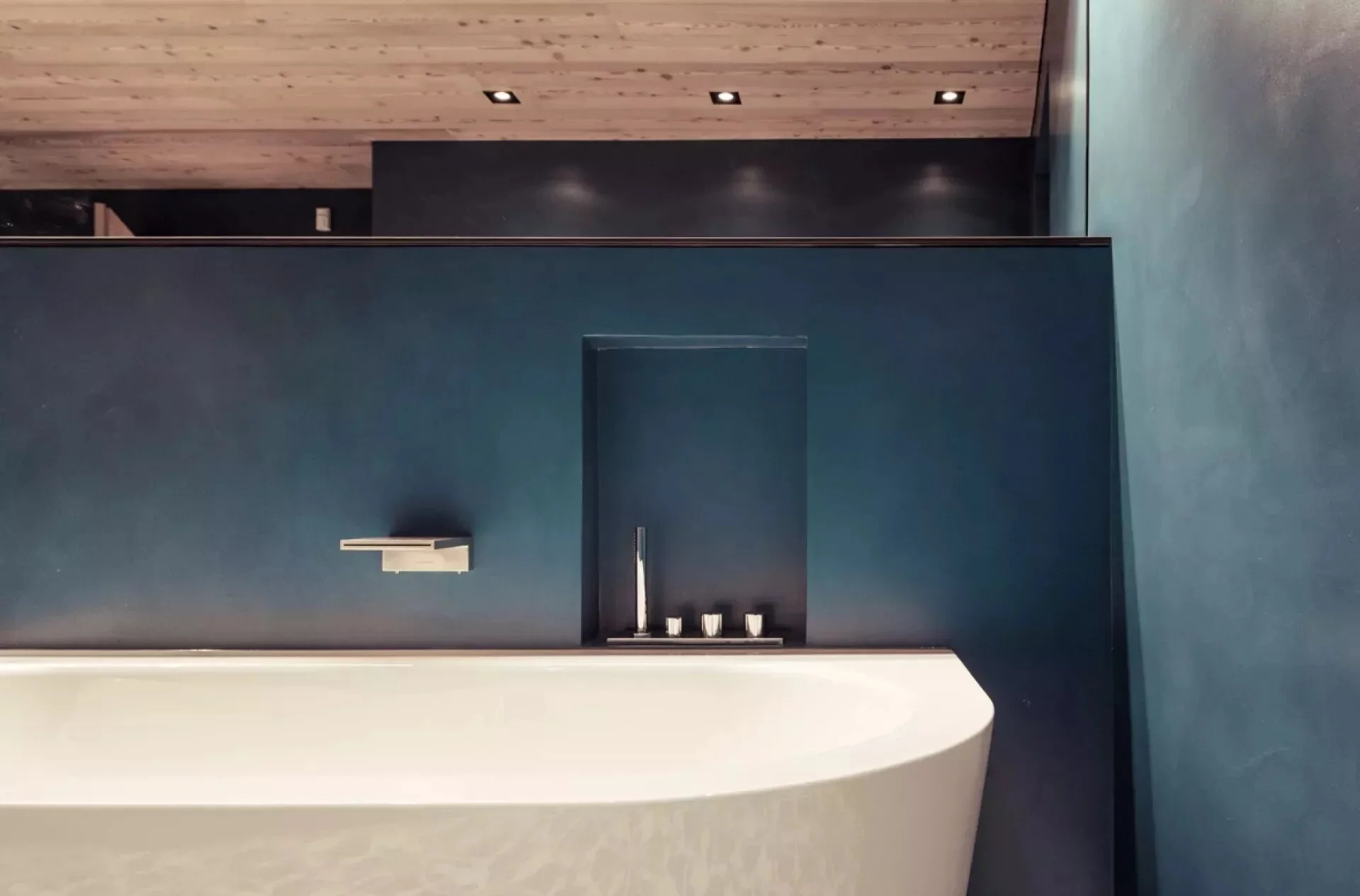 The apartments themselves combine floor-to-ceiling panoramic windows with comfortable open-plan layouts. Bathroom, kitchen and dressing room are arranged in a cube system, while the storage spaces are outsourced. This results in interlocking zones within the apartments with no loss of living space. Floor-level shower continue the idea. However, 30 different bathroom layouts required 30 differently-sized shower areas. The solution? Bespoke Floor shower areas of enamelled titanium steel — simply perfect.